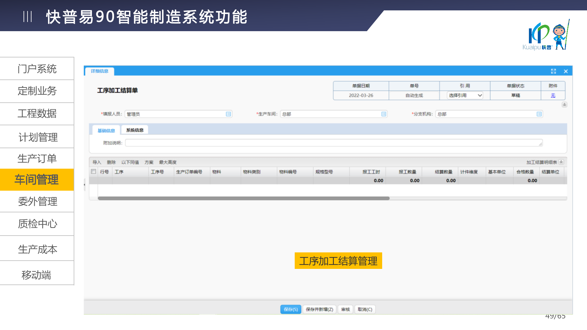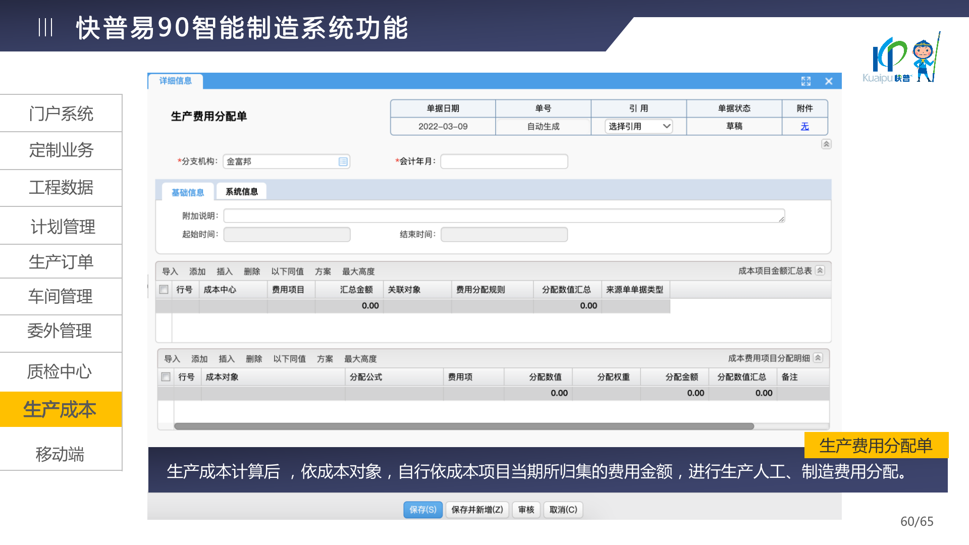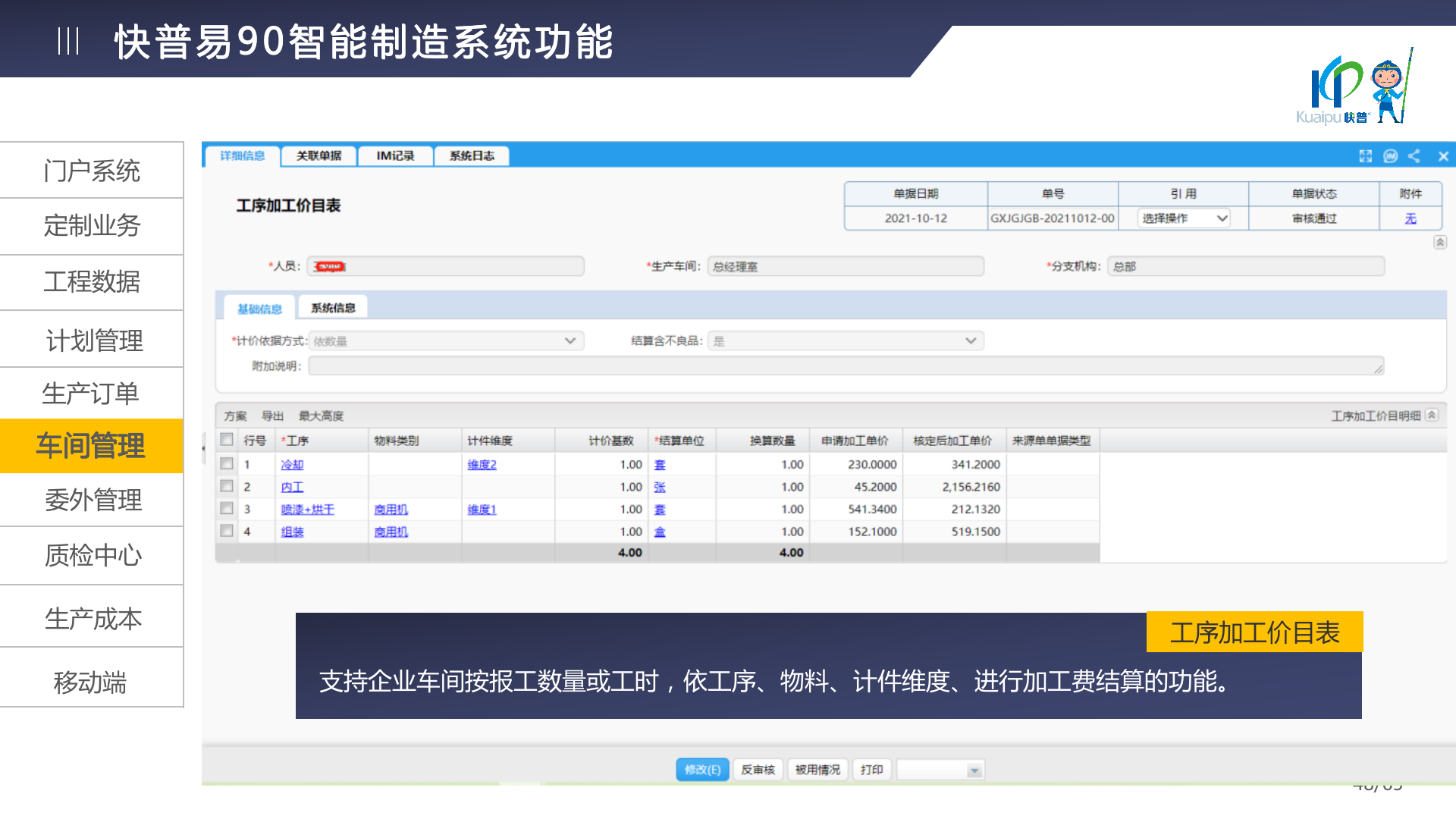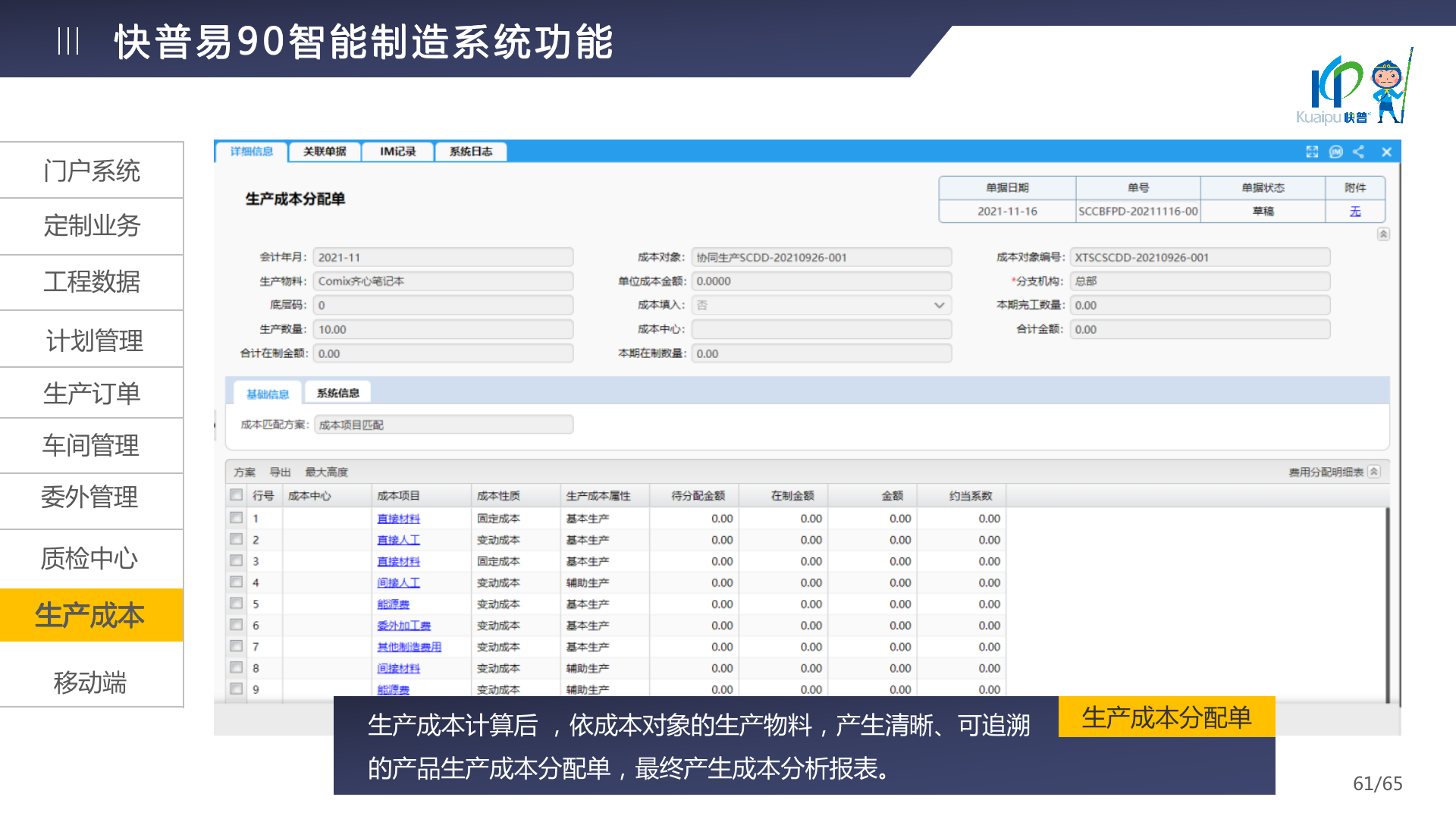 快普易90融合了大量精益生產管理的經驗,涵蓋計劃管理、BOM管理、MRP運算、生產訂單管理、供應鏈管理、車間管理、出入庫管理、委外管理、質量管理、生產成本核算、報表分析等全面生產管理,為企業(yè)打造實時感知變化、分析變化、提供決策的數(shù)字化管理平臺,推動企業(yè)創(chuàng)新的管理,實現(xiàn)“智能制造”的數(shù)字化轉型。