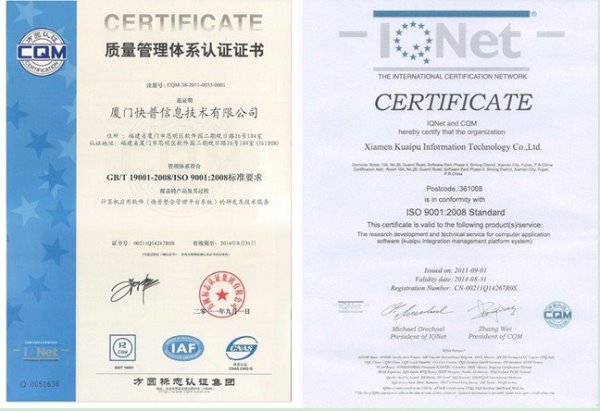 自公司成立起,快普就嚴格按ISO9001質(zhì)量體系標(biāo)準(zhǔn)進行規(guī)范化運作。今年年初快普公司正式引進ISO質(zhì)量管理體系進入輔導(dǎo)期以來,經(jīng)過半年多貫標(biāo)工作的深入開展,今年8月,審核專家對快普公司質(zhì)量管理體系運行的有效性、符合性給予了高度的評價,一次性便順利通過了方圓認證集團的嚴格審核,并獲得了ISO9001國際質(zhì)量管理體系認證證書。