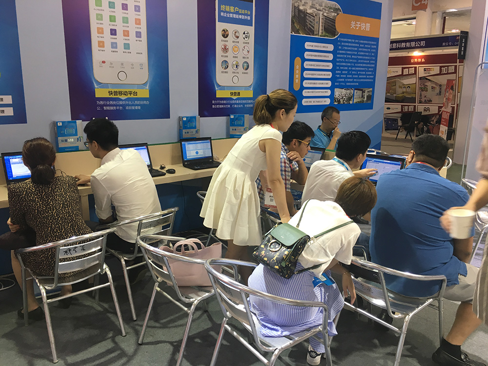 觀眾紛紛加入現(xiàn)場體驗(yàn)快普M8管理系統(tǒng),體驗(yàn)強(qiáng)大的整合管理功能。