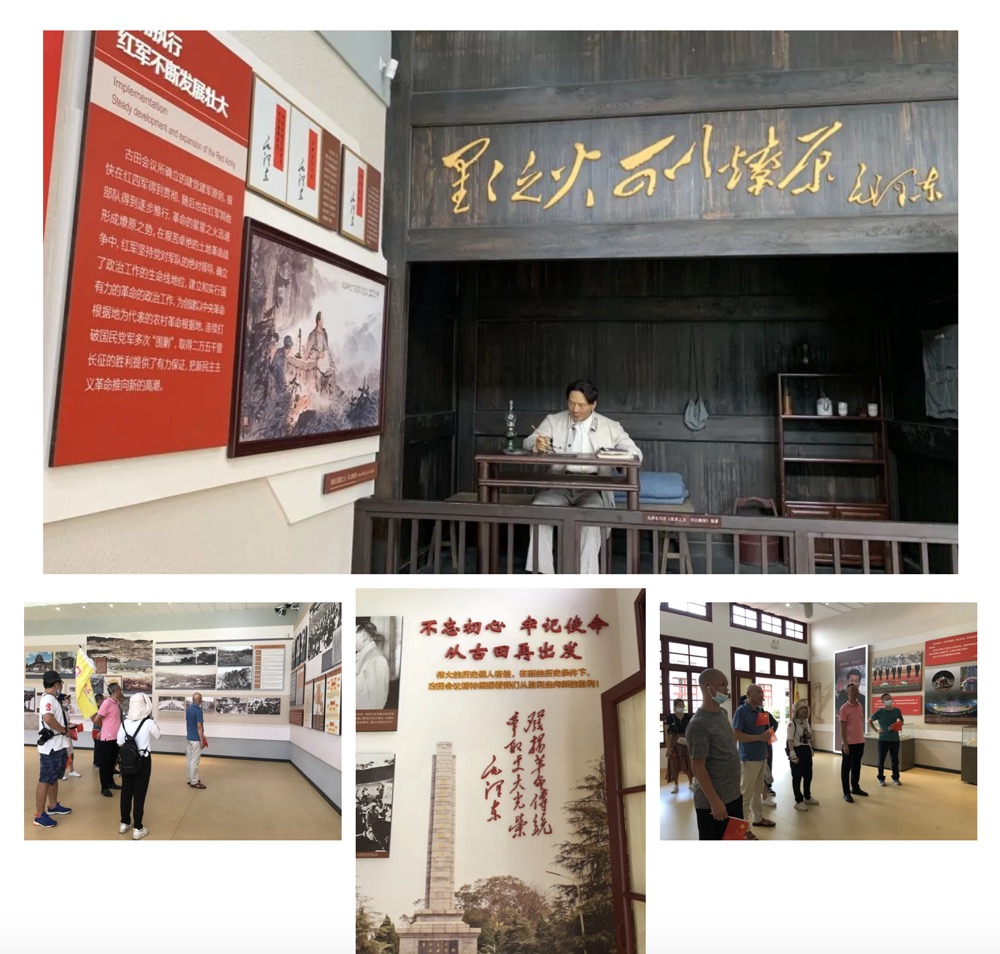 會址保持了當(dāng)年的陳設(shè),6列學(xué)生桌椅陳舊而整潔。會場正上方掛著“中國共產(chǎn)黨紅軍第九次代表大會”的橫幅,地板上的斑斑炭火印跡,瞬間把我們帶到了1929年那次非同尋常的會議。