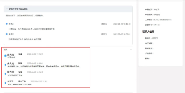 第二步:工單被客服認(rèn)領(lǐng)后,您可看到左上角有具體的受理工程師,咨詢自動(dòng)形成一個(gè)問題管理。